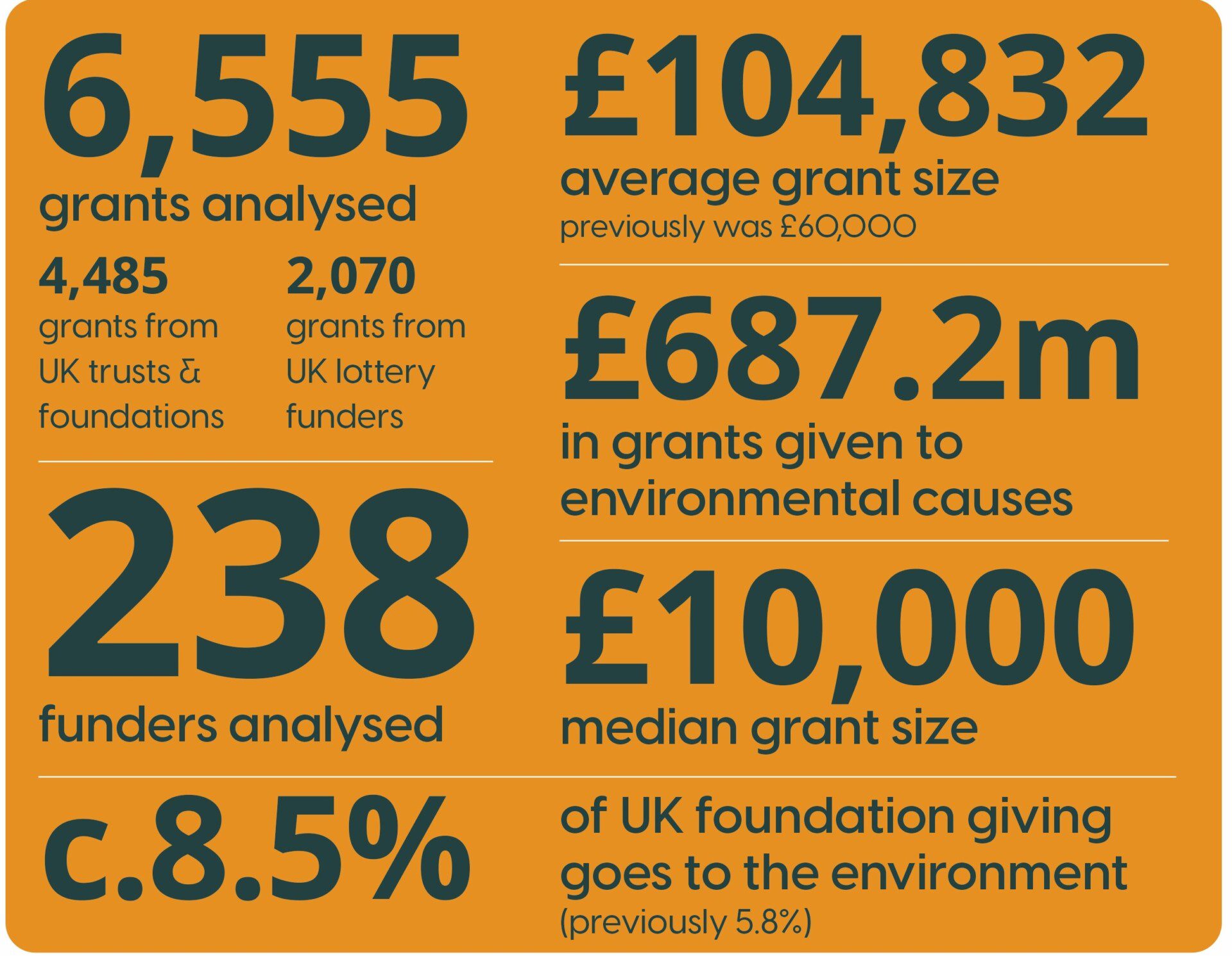 - A total of £687.2 million in grants were given to environmental causes in 2021/22.